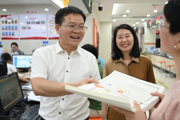 “辦事過(guò)程順暢嗎?”“對(duì)這里的服務(wù)滿意嗎?”“還有什么意見(jiàn)嗎?”窗口處,一位辦事群眾正在做最后的資料整理,周永紅和他熱絡(luò)地聊了起來(lái)。了解到該群眾第一次來(lái)就辦完了所有的業(yè)務(wù),周永紅滿意地點(diǎn)了點(diǎn)頭,隨即以辦事人員身份到窗口體驗(yàn)業(yè)務(wù)咨詢(xún)、信息填報(bào)、資料提交、事項(xiàng)辦結(jié)等流程,深入了解窗口辦理各項(xiàng)業(yè)務(wù)存在的問(wèn)題、堵點(diǎn),督促指導(dǎo)窗口和審批后臺(tái)進(jìn)一步優(yōu)化業(yè)務(wù)流程、縮短辦理時(shí)限。