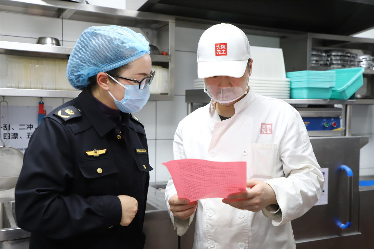 此次檢查緊扣網絡餐飲食品安全關鍵環節,重點圍繞食材采購管理、互聯網明廚亮灶建設、外賣包裝規范、食安封簽落實等方面,詳細了解門店外賣運營全流程情況。檢查中,針對大碗先生吾悅廣場店存在的一次性飯盒反復使用問題,檢查組現場責令限期整改,同時要求門店組織全體從業人員開展晨檢和外賣餐飲良好行為規范專題學習,從源頭規范經營行為。