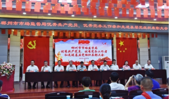 6月29日,郴州市市場監管局召開優秀共產黨員、優秀黨務工作者和先進基層黨組織表彰大會暨慶祝建黨100周年文藝匯演,局長郭煒東出席會議并講話,黨組書記李干弟主持會議。