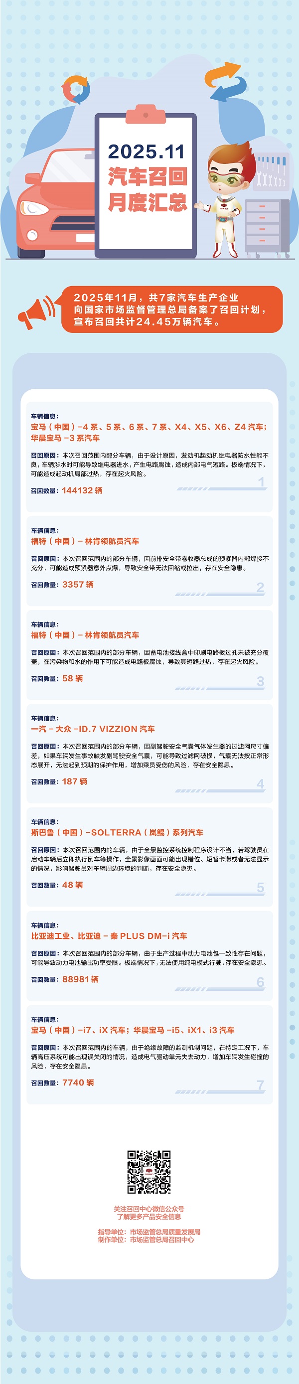 2025年11月汽車召回月度匯總