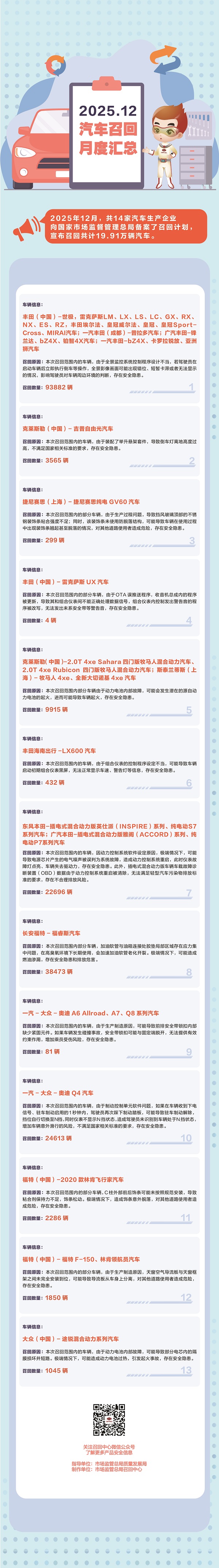2025年12月汽車召回月度匯總